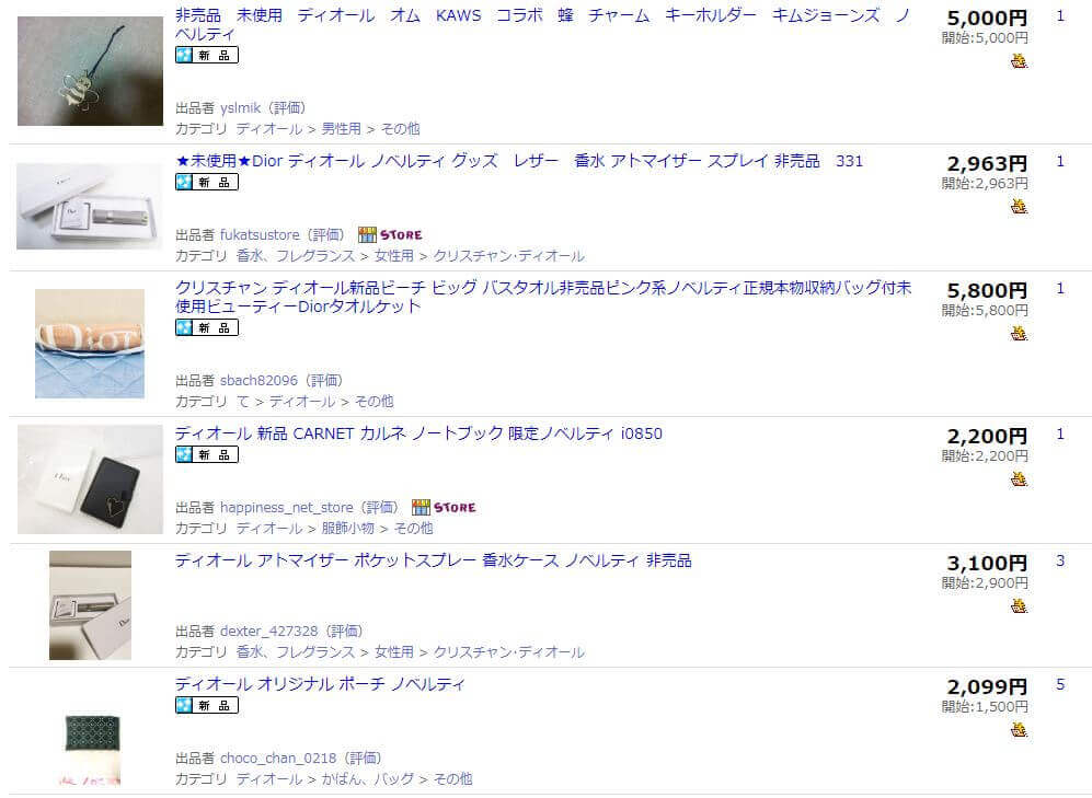 ノベルティの場合、同じ商品を出品している方が多くなるので、その中で一番落札価格を上げる為、目立つ為に、『この商品を買ってくれれば、このノベルティも付いてきます!』と謳って販売しましょう!