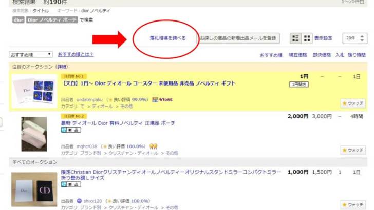 それを防ぐためにも、まずは落札相場を知る事が大事です。
